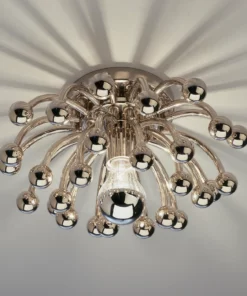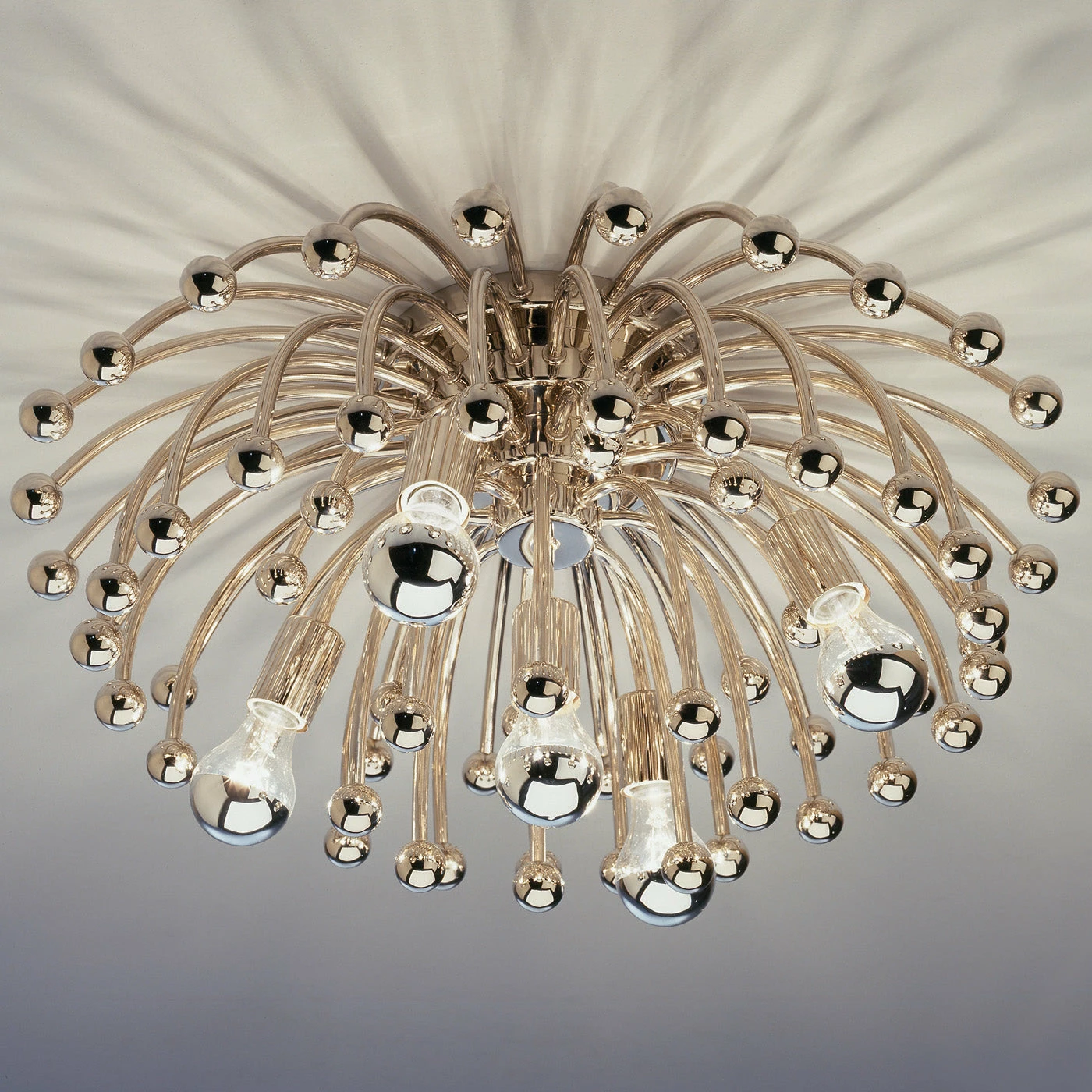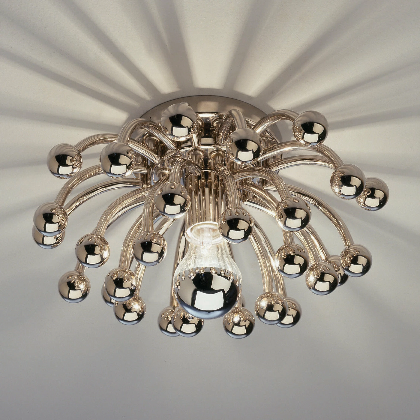 The gleaming curved armature of our Anemone Flush Mount adds twinkly intrigue to your ceiling or walls (they tantalize as sculptural sconces). Available in two sizes.