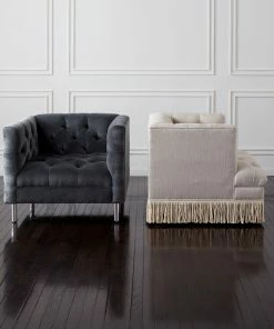 The Baxter T-Arm Chair melds tufted comfort and clean lines. The cutback t-arm shape is magicâit balances the formality of a high-back chair with the invitingness of a more casual, less-closed in low-armed seat. TrĂšs luxe in a living room or a comfortable, chic addition to any modern library or study.