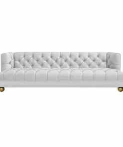 The Baxter T-Arm Grand Sofa melds tufted comfort and clean lines. The cutback t-arm shape is magic—it balances the formality of a high-back tuxedo sofa with the invitingness of a more casual, less-closed in low-armed sofa. Très luxe in a living room or a comfortable, chic addition to any modern library or study.
