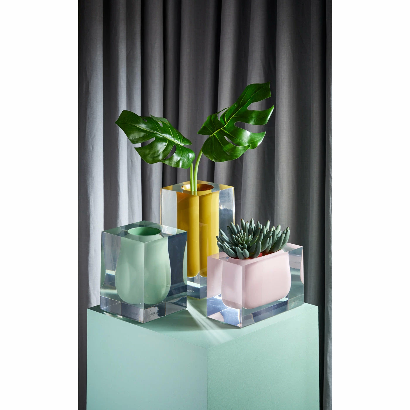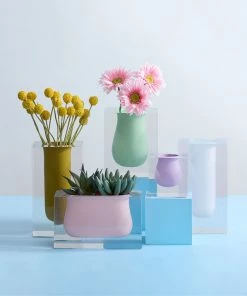 An organic form in a bold or moody hue suspended within a thick clear acrylic cube. Our Bel Air vases are perfect for tight bouquets, and also fab as an intriguing objet sans blooms. Available in several shapes and sizes, they’re standouts on their own and major in multiples—build a vibrant centerpiece with a line of Mini Scoops, or group different colors and shapes for a modernist tablescape.