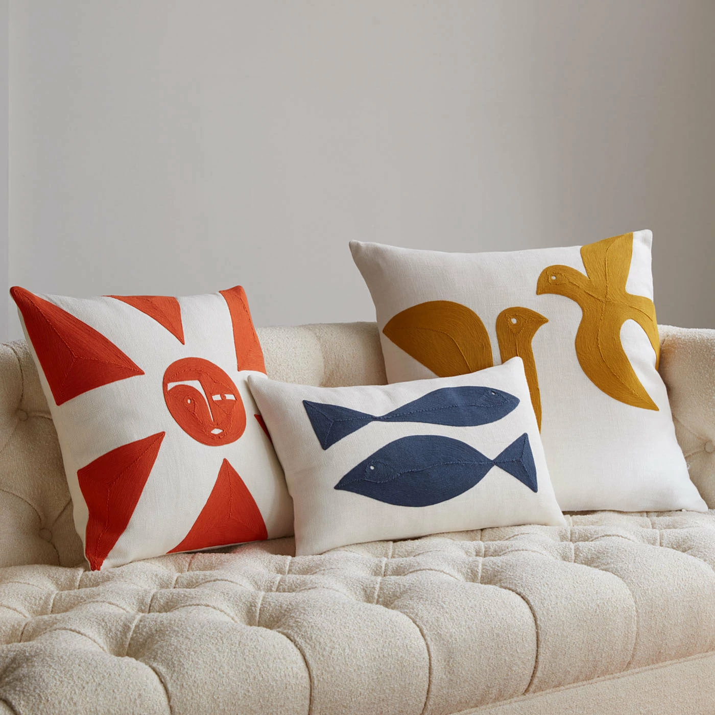 Inspired by the French seaside, our Biarritz pillows feature corded embroidery on chunky linen in mod and moody tones. Naturals for punching up a neutral pillowscape or punctuating a pile of solids.