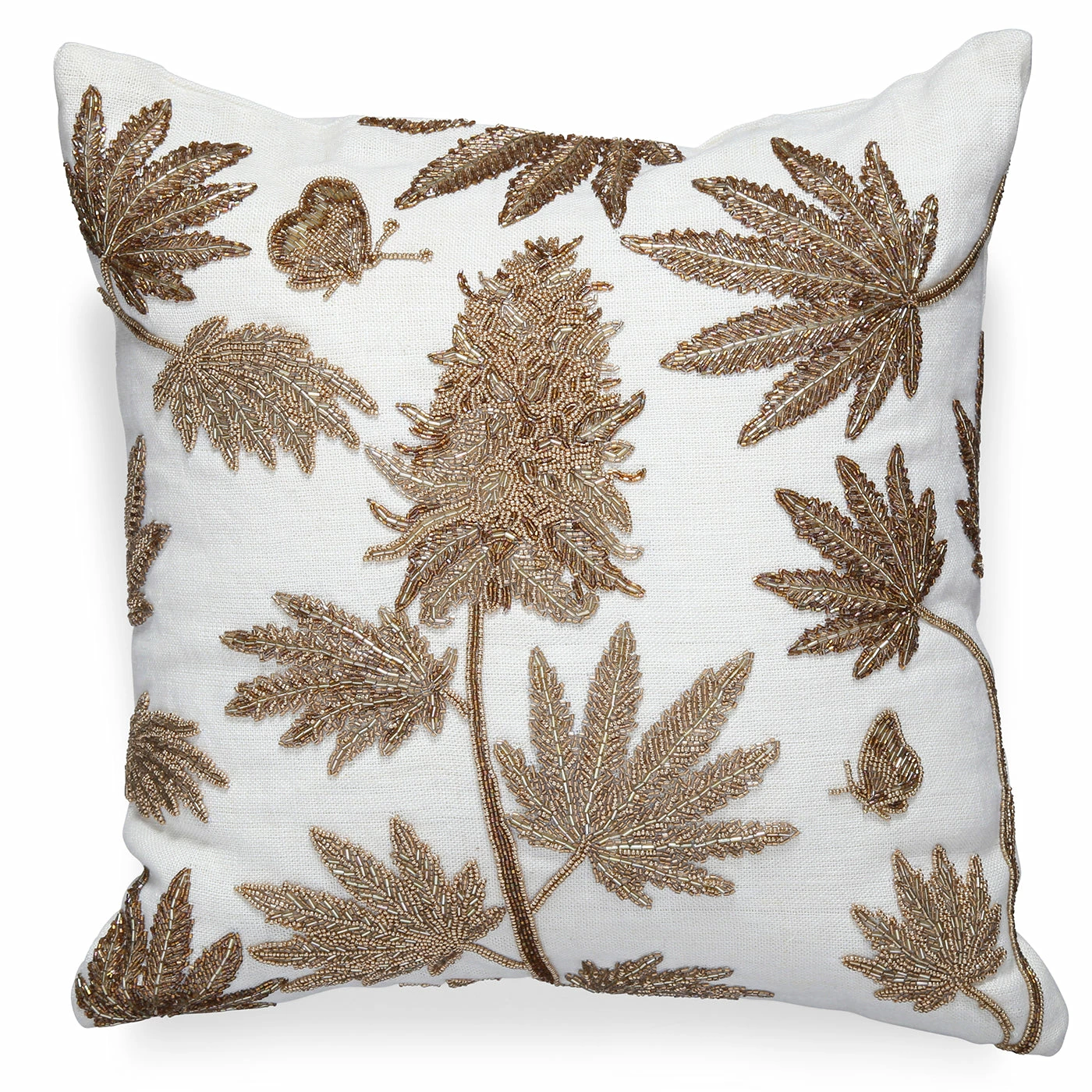Shimmering gold beads embroidered on white linen—natural attractions you can cozy up to. The perfect rich hippie must-have for your eccentric and eclectic pillowscape. Pair them with solids and watch them pop, or layer them in a room already wild with décor.