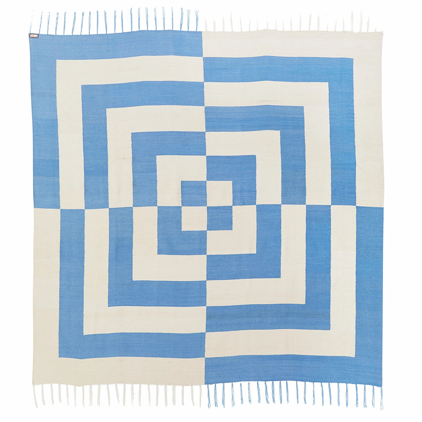 Warm and welcoming blue meets mind-bending Op Art for a dreamy effect.