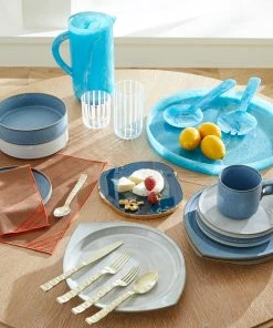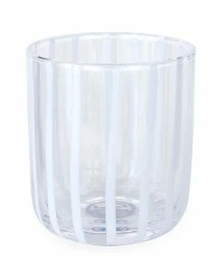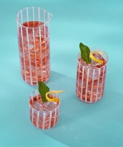 Give your next sips sesh a refresh. Our hand blown Cabana glassware features a ring of vertical stripes in either fresh white or pale blue—perfect for mixing and matching. Pair with our Cabana Glass Pitcher for coordinated cool.