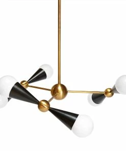 Simple geometric shapes—cones and spheres—collide with dynamic results in our Caracas Six-Light Chandelier. The three arms offer countless configurations—vertical for a classic vibe, horizontal for a more streamlined look, or angled for an unexpected touch. A little industrial, a little fancy, and a lot versatile.
