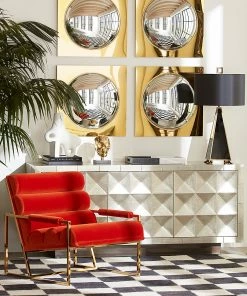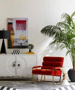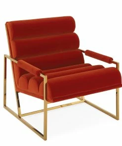 Minimalist comfort gets a modernist makeover—we’ve taken our definition of leaned-back luxury to the next level with our Channeled Goldfinger Lounge Chair. Ultra-comfy channeled cushions and plush arm rests complement its perfect pitch on a pared down, polished brass frame. A bold burnt orange velvet turns up the glam, alternating blues feel seaside chic, or a fresh textural finish takes neutral to the next level. A mod moment for your Park Ave pad or swanky chic for your mid-century abode.