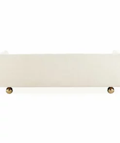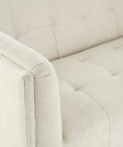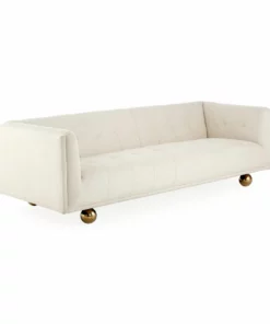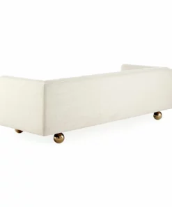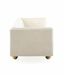 Our spin on the classic Chesterfield, sized for smaller spaces. We took the original profile—clubby comfort, tailored tufting—and made it modern with a pared down silhouette. The finishing touch: oversized (and ultra-glam) brass orbs in place of traditional wooden bun feet. The perfect balance of formal and fresh, its loungey depth and neutral linen or navy upholstery make it a must-have for any apartment, pied-à-terre, or petite room.
