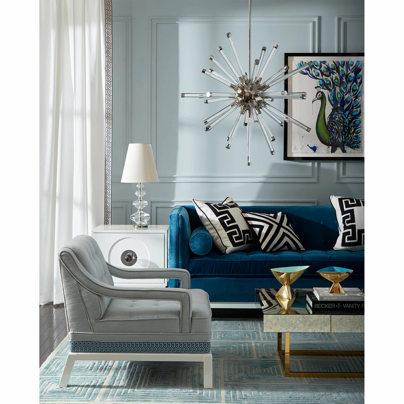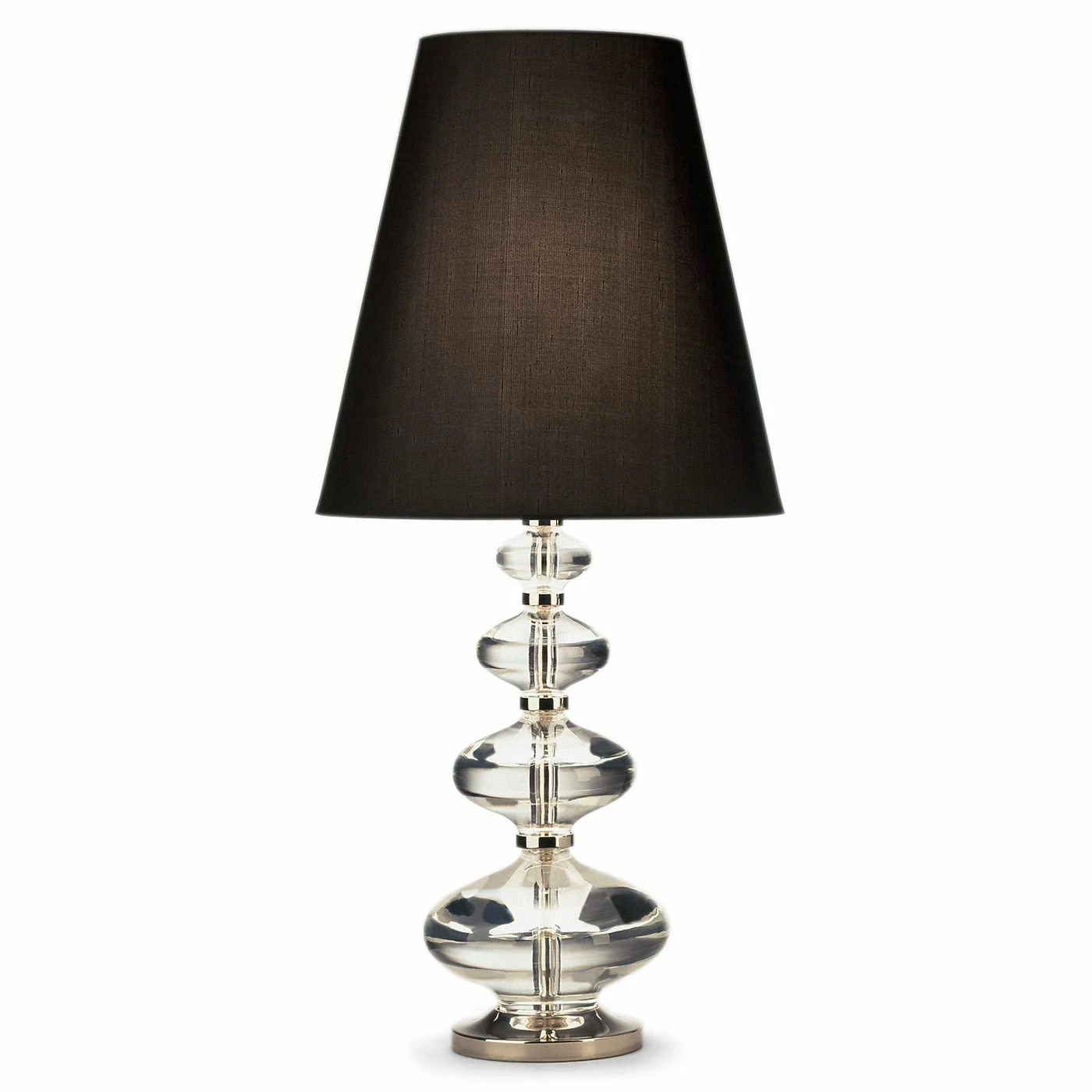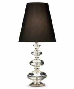 The Claridge Collection: lead crystal with polished nickel accents and oyster or black silk dupioni shades.