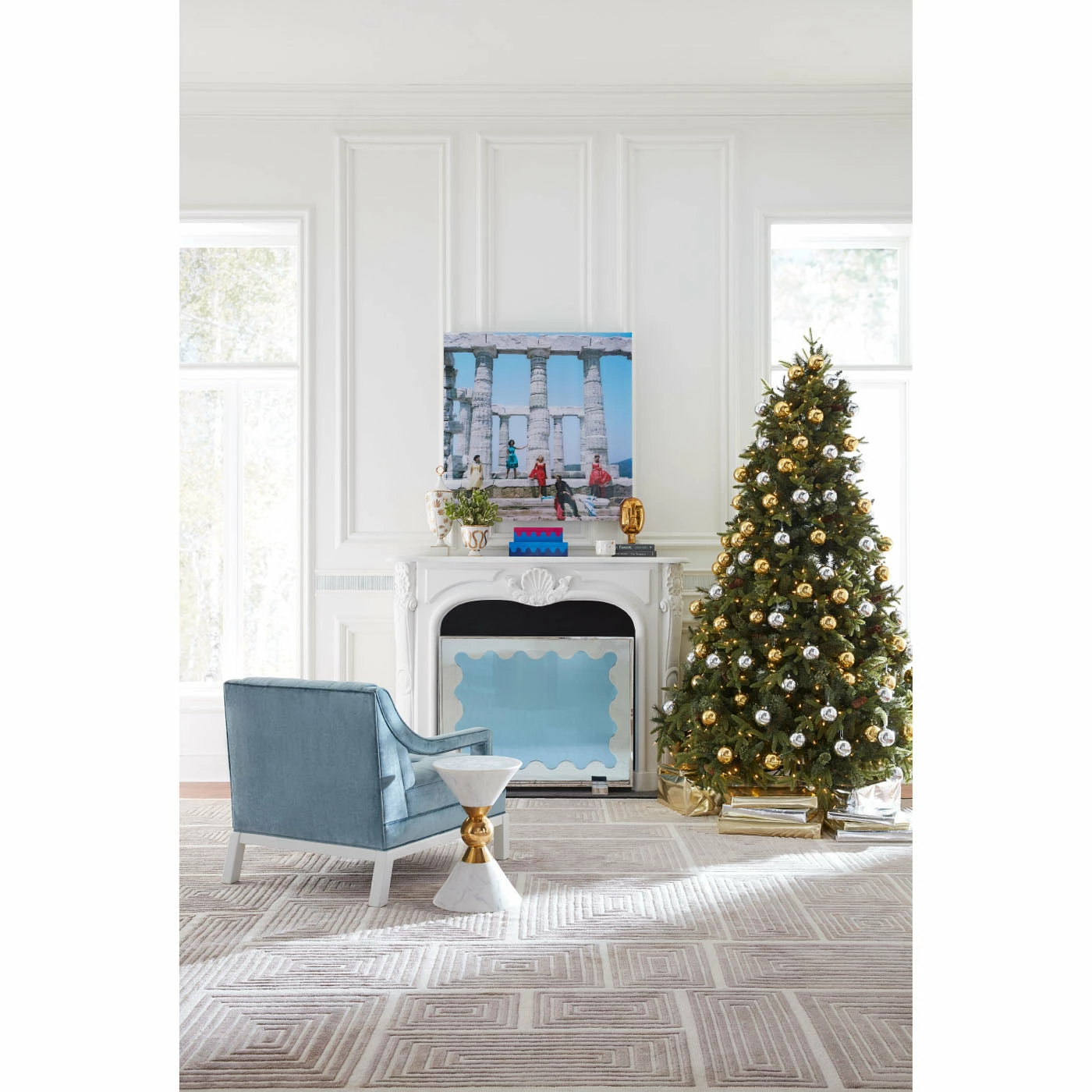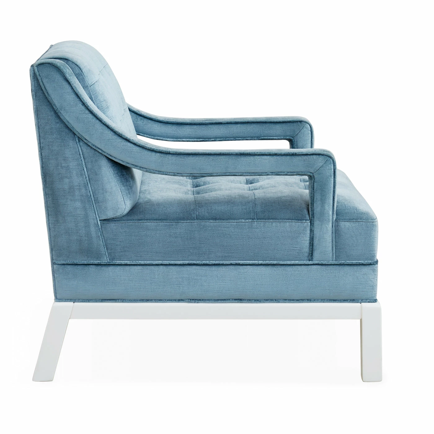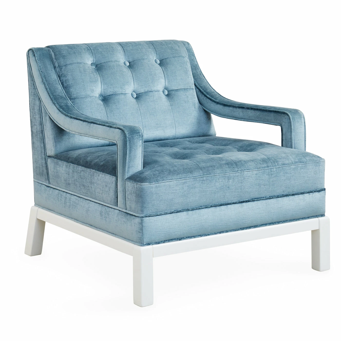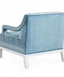 Inspired by ’40s Chinoiserie with a nod to Park Avenue, our Doris Chair is the primary punch that refreshes any room. The open arm detail and Ming-inspired base adds sculptural flair, but it’s still a comfy perch for reading. Upholstered in bold blue velvet with a patterned trim or a fresh and vibrant shade, both with a bright white lacquer base for added impact.