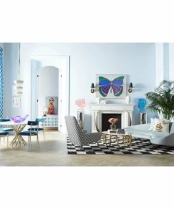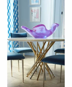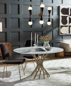 Our Electrum Dining Table features a swirling constellation of polished brass and polished nickel rods. Comfortably seats six or moonlights as a fab game table for an unused corner of your living room. We offer a range of couture tabletops that complement this base, including white marble for your Park Avenue penthouse and glossy lacquer for your West Village aerie.