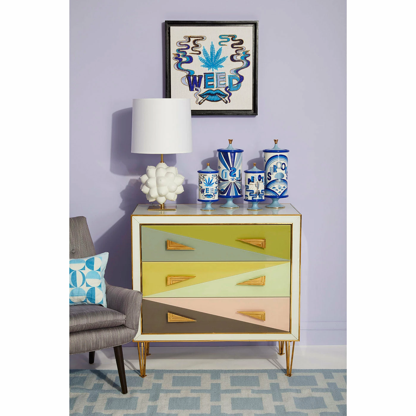 Jonathan throws the models for the Muse vessels and then substitutes our signature geometric relief patterns with body parts—faces, breasts, lips—to create a surreal style. Each piece is made from unglazed matte porcelain to accentuate the forms and is inspired by our favorite artists’ muses.