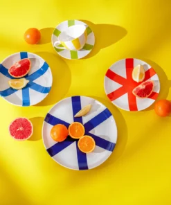 For a dining experience with design cred—Helsinki dinnerware. Each classic porcelain piece is branded with a bold asterisk in a rich, modern color. As chic as they are simple, and as hardworking for everyday as they are stylish for occasions. Dishwasher safe.