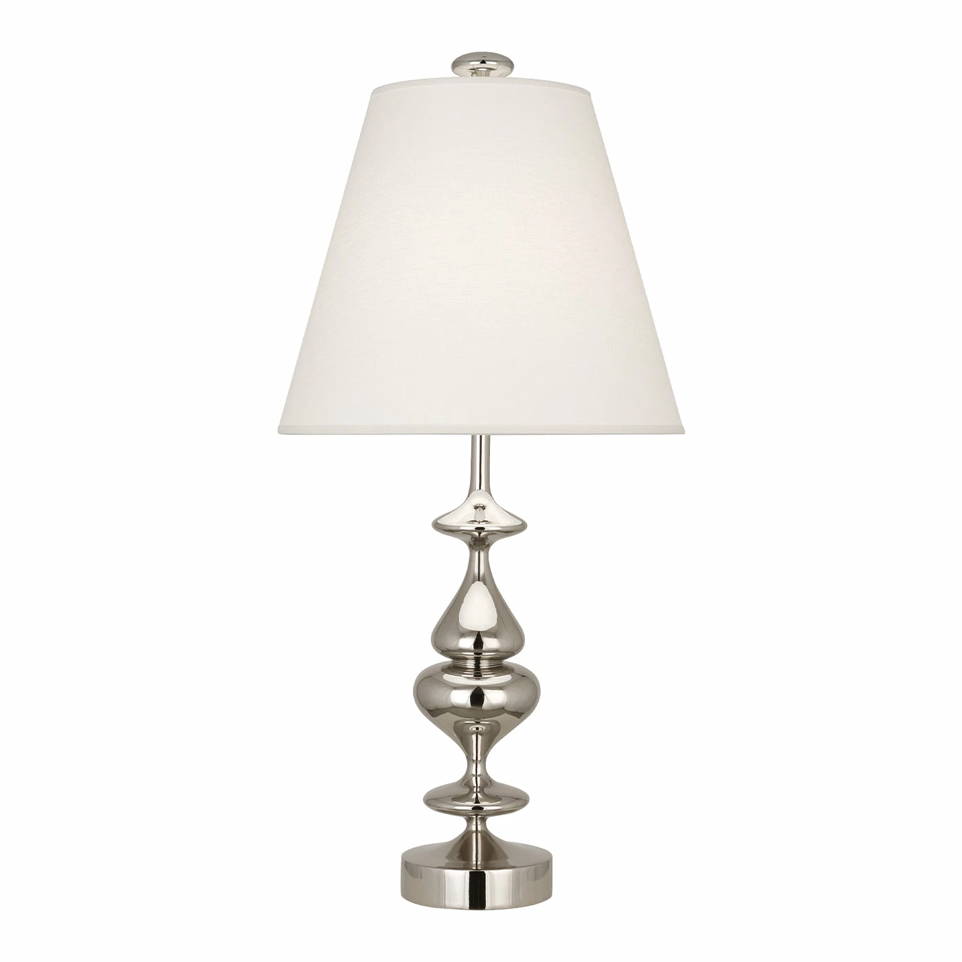 A twinkly update on one of our signature silhouettes. Our Hollywood Havenhurst Table Lamp revives a favorite form with your choice of highly reflective finishes—timeless brass or glamorous nickel. Topped with a round oyster linen shade, this sparkly star lights up any tabletop.