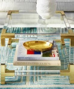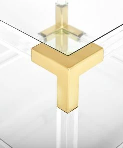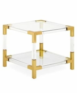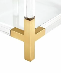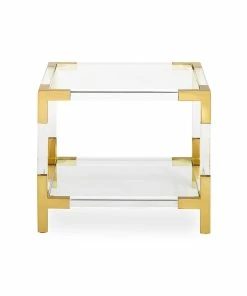 In luxe clear acrylic with brushed brass accents, this petite cube is perfect next to your sofa, by your bed, or saddled up next to your favorite chair. The second shelf gives you plenty of space for storage and styling your favorite books and baubles.