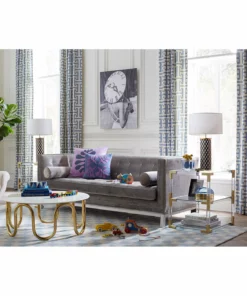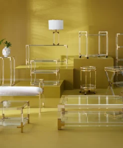 At 26″ high, our Jacques Two-Tier Side Table is the perfect complement for any high-armed sofa, and it doubles delightlyfully as a chic nightstand. Luxe clear acrylic, warm brass accents, and a simple silhouette work in endless interiors, from minimalist to maxilmalist.
