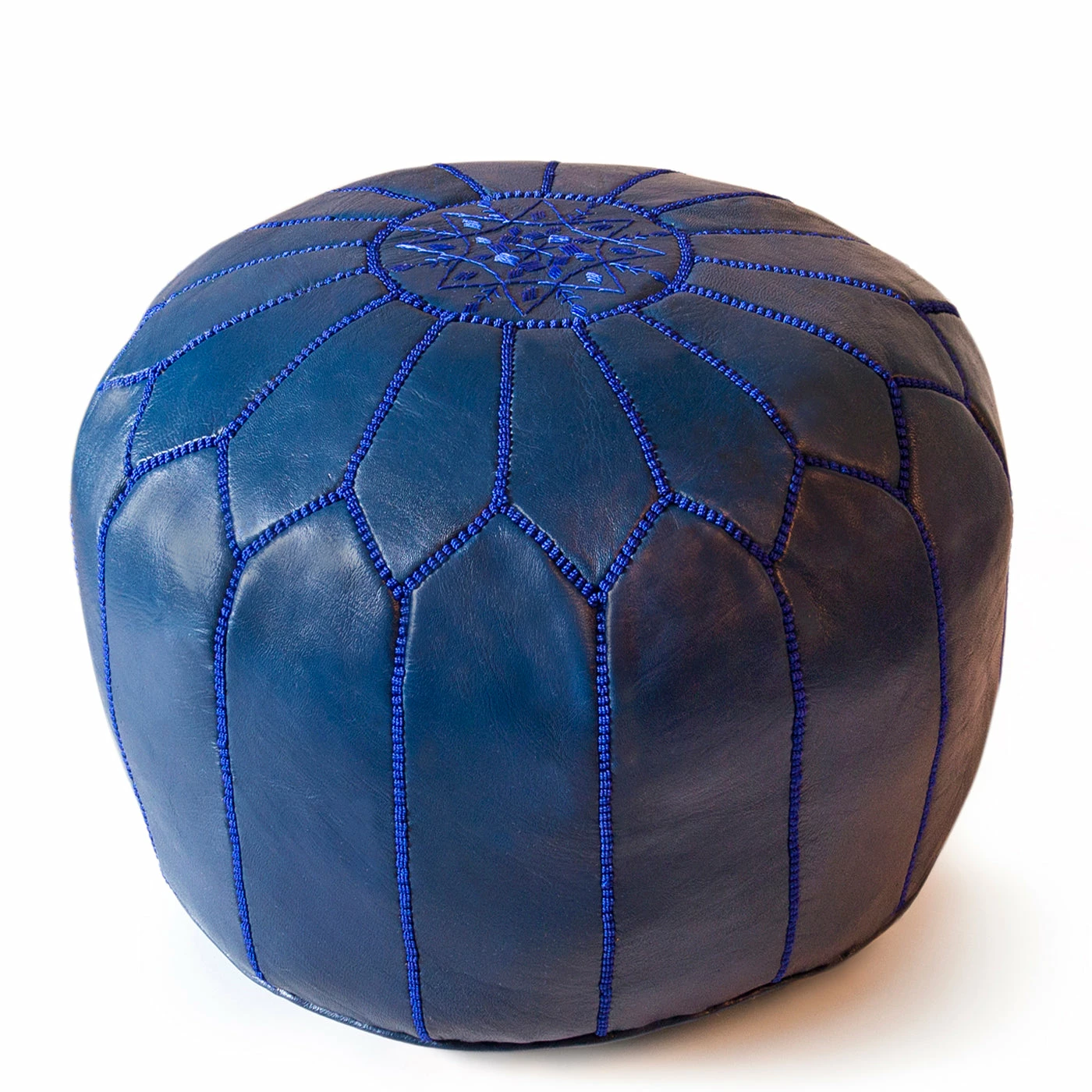 Made in Morocco by skilled artisans, this leather pouf is an essential for adding a pop of handcrafted color to your home. Each pouf is dyed to exact color specifications and hand-sewn for superior durability. Filled with dense Kapok, this versatile piece is perfect as an ottoman or a decorative accent.