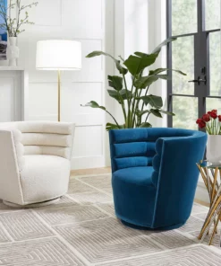 Finally, a club chair for a club you’d actually want to belong to—and it swivels. Drop in and let our sculptural Maxime Swivel Club Chair cradle you in its channel-tufted cocoon. Featuring a super cushy seat and a curved back that hugs. A modernist masterpiece that’s comfy enough to curl into for a cozy night. Warm and cozy in Olympus Oatmeal bouclé or luxe in a glamorous blue velvet neutral.