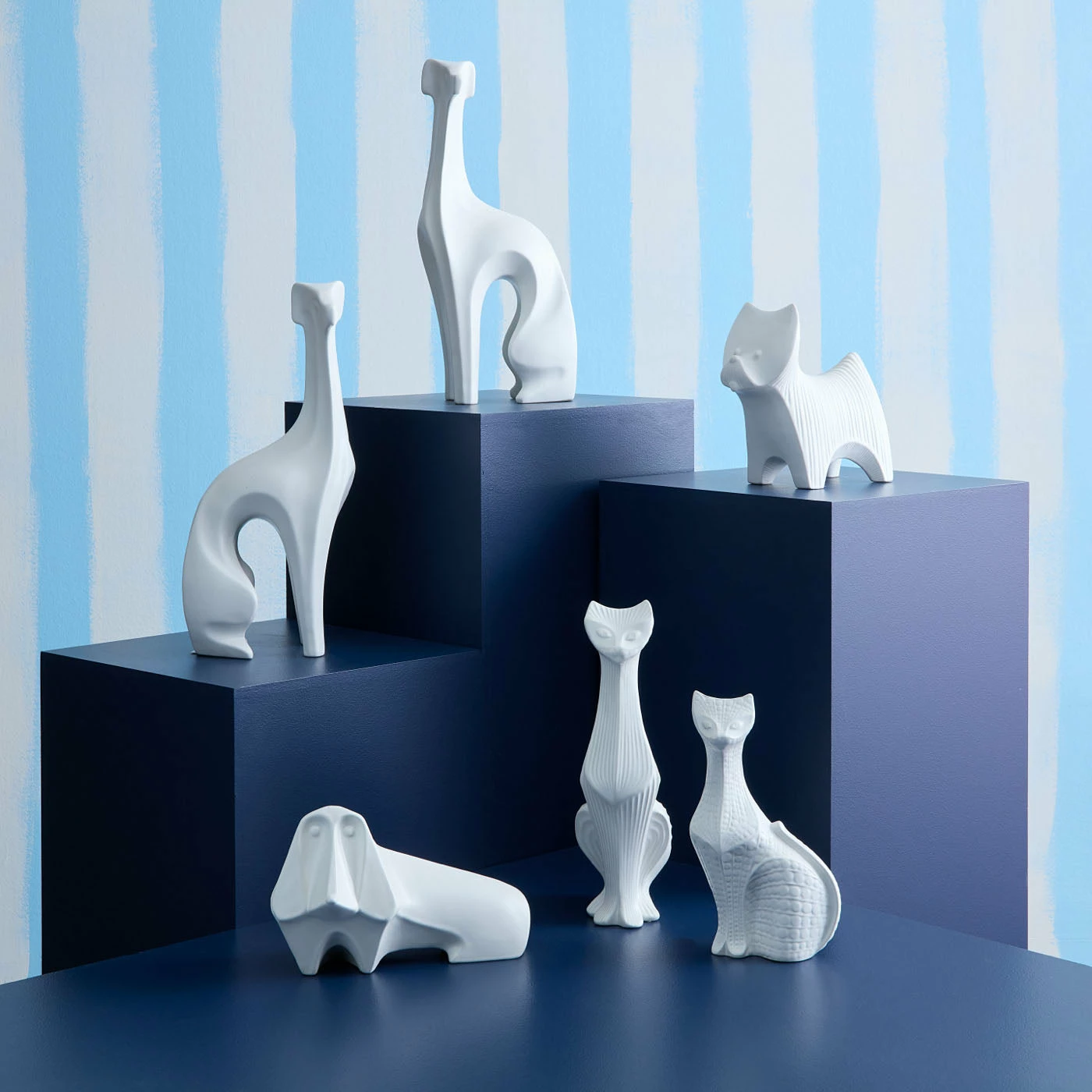 Our quietly welcoming stoneware vessels and sculptures merge elemental forms with subtle layers of pattern and decoration. Details are elevated by a soft satin matte finish. One adds a touch of couture craft to your console, or group the collection to give your shelf or mantel some modern menagerie magic.