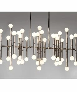 Our modern take on classic bamboo. Our twist on the traditional, iconic world of bamboo adds a bit of socialite glamour to a loft or modernism to a Park Avenue Pad. The Meurice Rectangle Chandelier adds sculptural glow in a narrow hallway or above a dining room table.