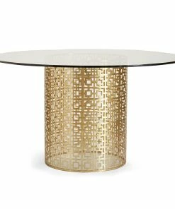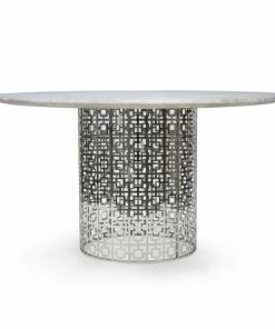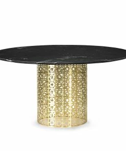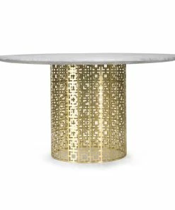 Comfortably seats six or moonlights as an ideal game table for an unused corner of your living room. Our signature Nixon pattern rendered in polished nickel or brushed brass provides a sophisticated perch for your choice of couture tabletop, including white marble for your Park Avenue penthouse or black marble for your bold bachelor pad.