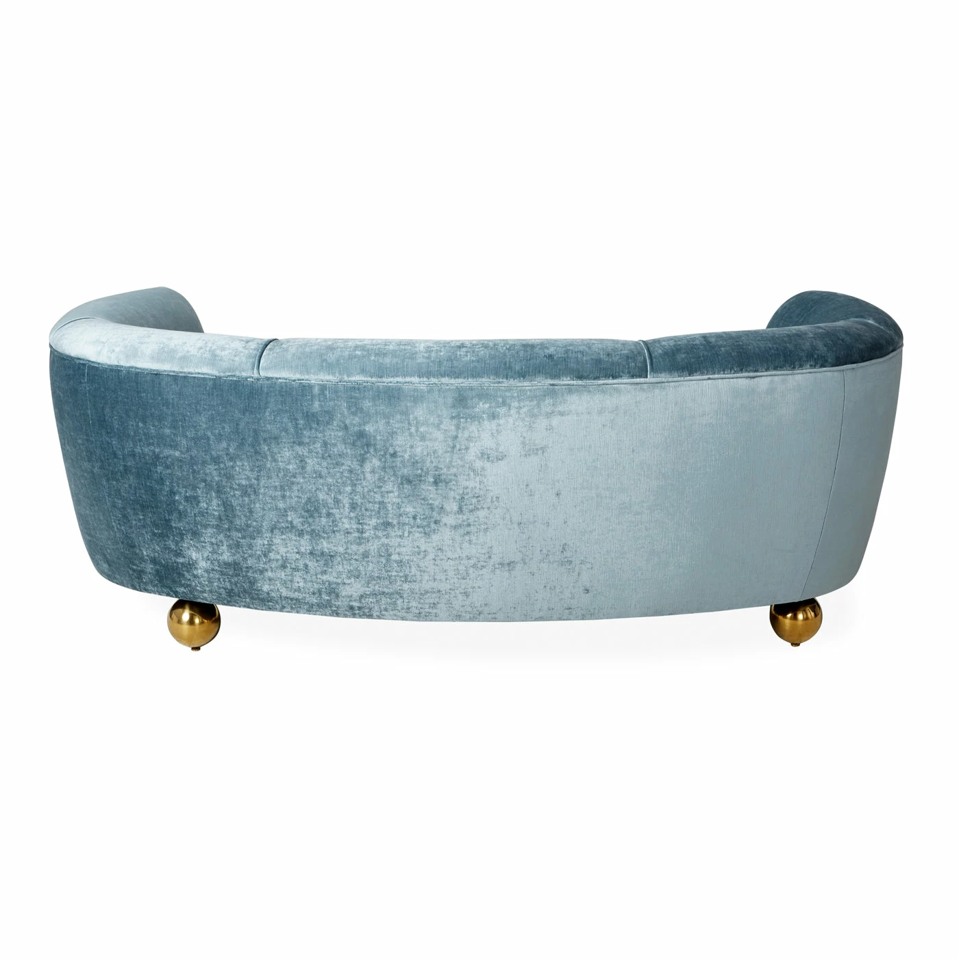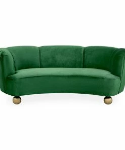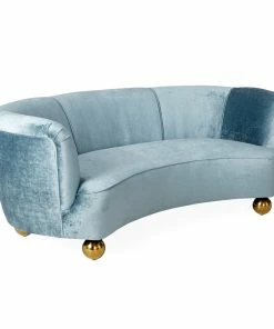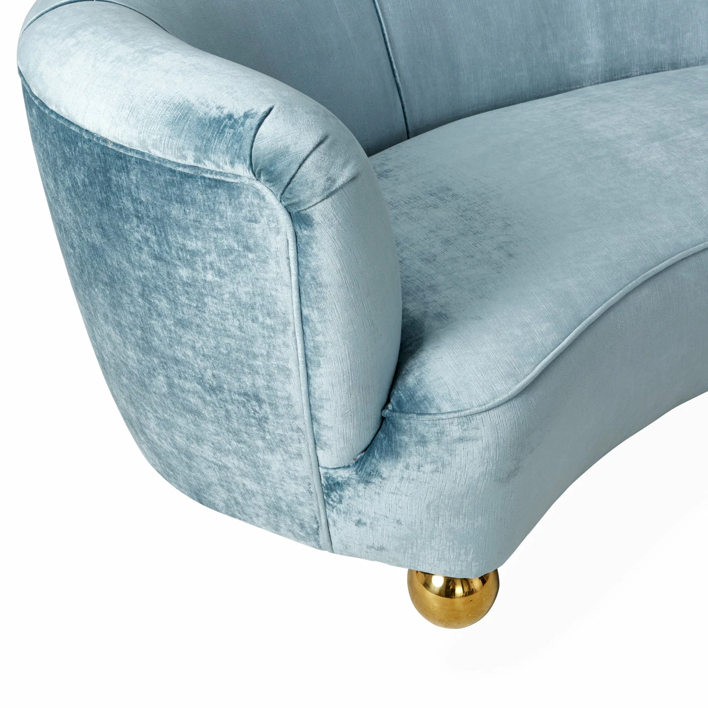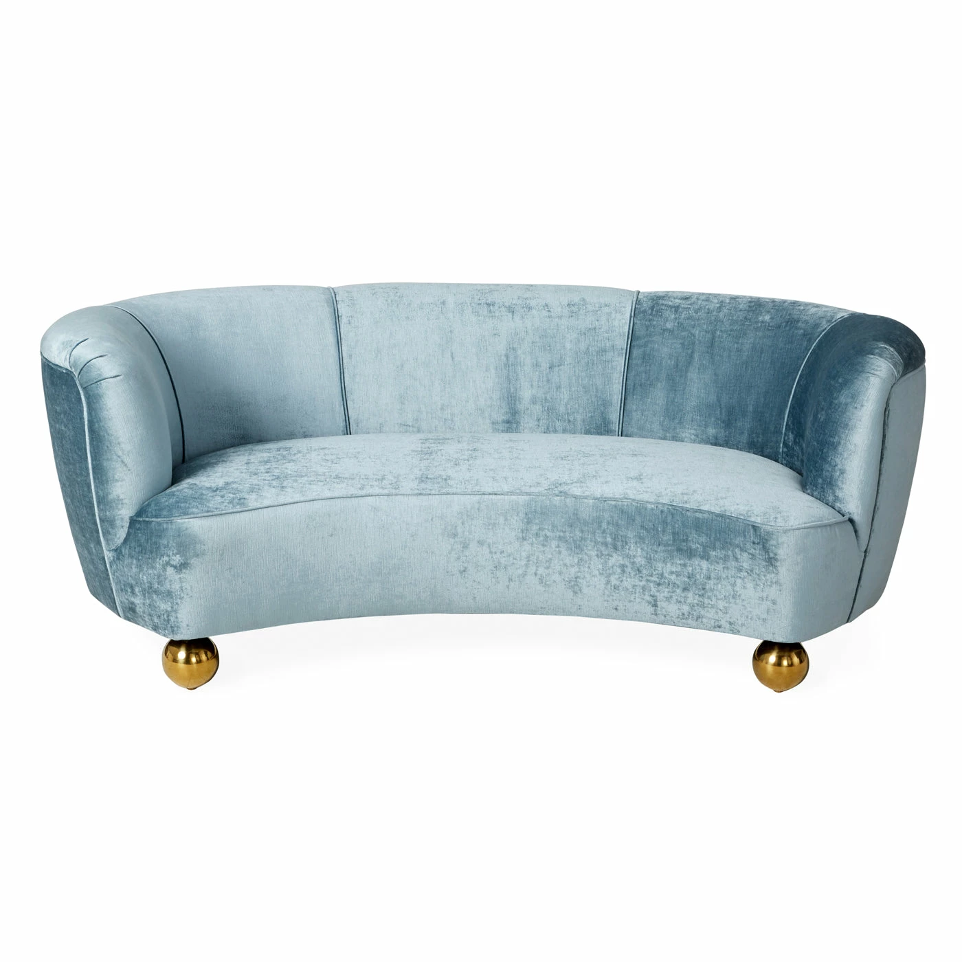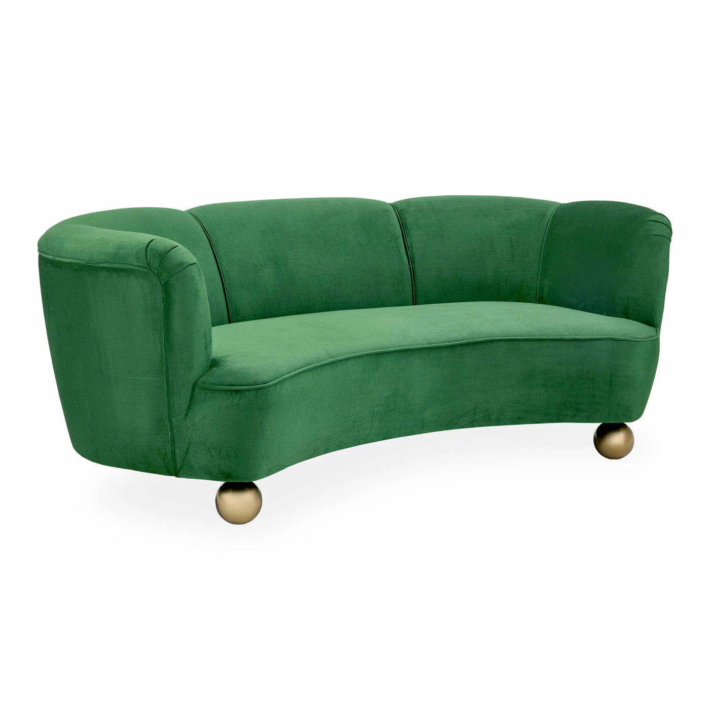 Our petite Parker Curved Sofa’s inviting, gentle curve channels aprés-ski chic in textural Teddy and is an eye-catching gem in saturated jade velvet. We swapped traditional bun feet with polished brass orbs for a glint of glamour. A super comfortable, incredibly chic power piece that fits wherever you need a fabulous seat.