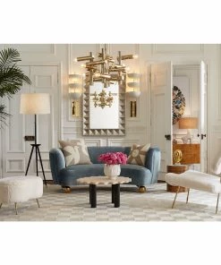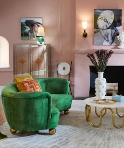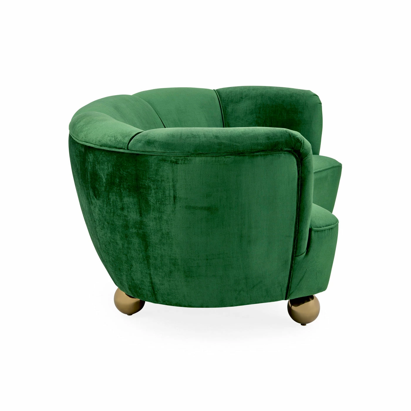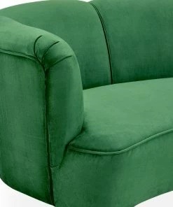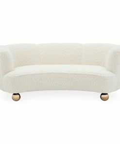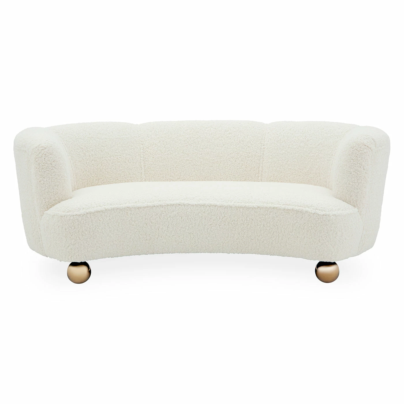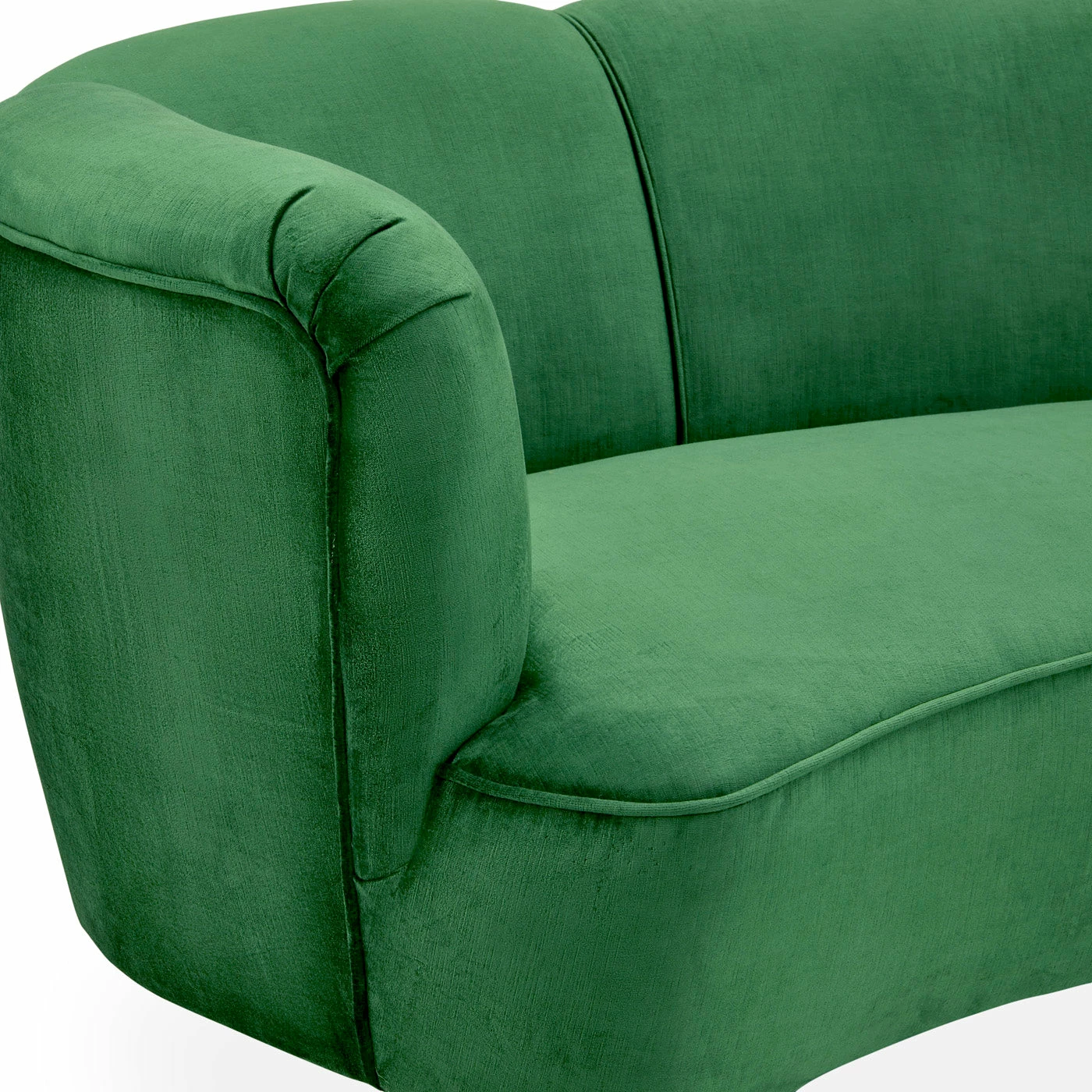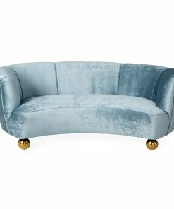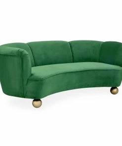 Our petite Parker Curved Sofa’s inviting, gentle curve channels aprés-ski chic in textural Teddy and is an eye-catching gem in saturated jade velvet. We swapped traditional bun feet with polished brass orbs for a glint of glamour. A super comfortable, incredibly chic power piece that fits wherever you need a fabulous seat.