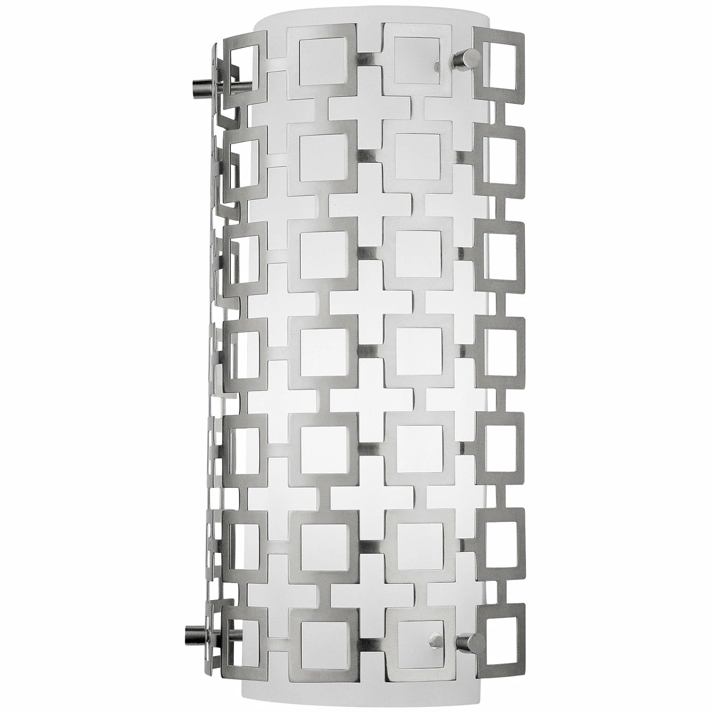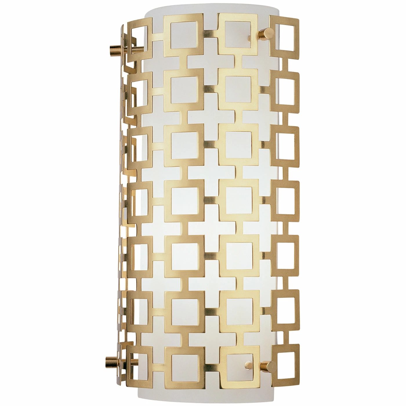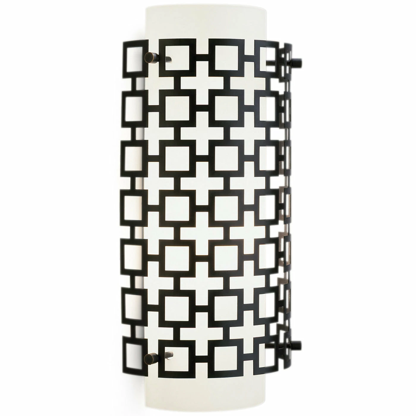 Our Parker Sconce features our classic Nixon pattern in a sleek, laser-cut metal iteration, further illuminated by the clean backdrop of the frosted cased glass interior shade.