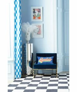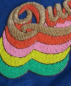 We collaborated with an artisanal workshop in India where a master beader imbued our clean graphic designs with craftsmanship and soul. Each artwork is hand-beaded on linen ground. Beads of varying heights and patterns within patterns create a sense of depth and dimension. The result is part pop art, part textile triumph.