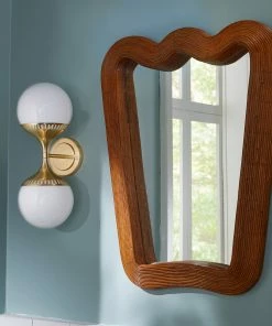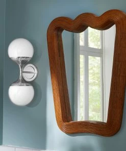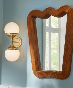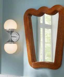 Add a double dash of mid-century magic or a flash of futuristic glam with our Rio End-on-End Sconce. Elongated silhouettes at each end resemble droplets of water, while curved shades featuring laser-cut detailing adds architectural oomph. Go for moody glamour with antique brass or twinkly chic with polished nickel.