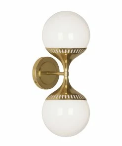 Add a double dash of mid-century magic or a flash of futuristic glam with our Rio End-on-End Sconce. Elongated silhouettes at each end resemble droplets of water, while curved shades featuring laser-cut detailing adds architectural oomph. Go for moody glamour with antique brass or twinkly chic with polished nickel.