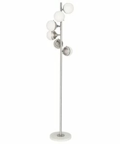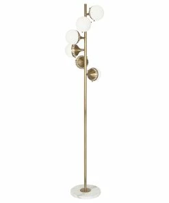 A modern take on mid-century glass globe lighting, our Rio Floor Lamp features six lights—each accented with a decorative cut-out motif—spiraling the top of a stem on a thick marble base. Choose from three finishes: a deep patina bronze for industrial chic, polished nickel for twinkly modernism, or antiqued brass for vintage warmth.