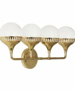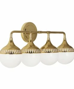 Add a dash of mid-century magic or a flash of futuristic glam with our Rio Four-Light Sconce. Four elongated silhouettes resemble droplets of water, while curved shades featuring laser-cut detailing adds architectural oomph. Go for moody glamour with antique brass or twinkly chic with polished nickel. Mount horizontally or vertically.