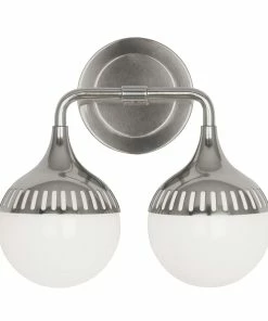 Add a dash of mid-century magic or a flash of futuristic glam with our Rio Two-Light Sconce. Two elongated silhouettes resemble droplets of water, while curved shades featuring laser-cut detailing adds architectural oomph. Go for moody glamour with antique brass or twinkly chic with polished nickel. Mount horizontally or vertically.