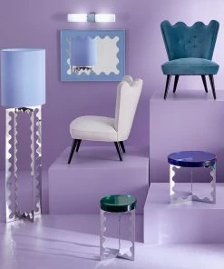 Ethereal and airy, our Ripple Floor Lamp’s shiny nickel base is a tall and trippy treat from every angle. The cylindrical shade in powder blue linen completes its sculptural presence. Play it modern or preppy in both minimalist and maximalist abodes.
