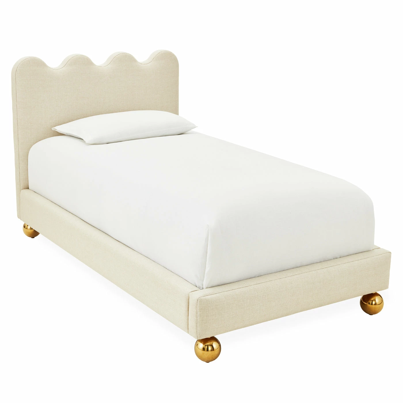 Chic and simple, our Ripple Bed features a brilliant wave of jewel-toned blue with a slight sheen—just the edge for a modern boudoir. A smooth velvet finish and bold, oversized brass orb feet at the base bring the perfect amount of glamour to the mix. This is the spot in your sanctuary that proves sweet and stylish dreams can come true.