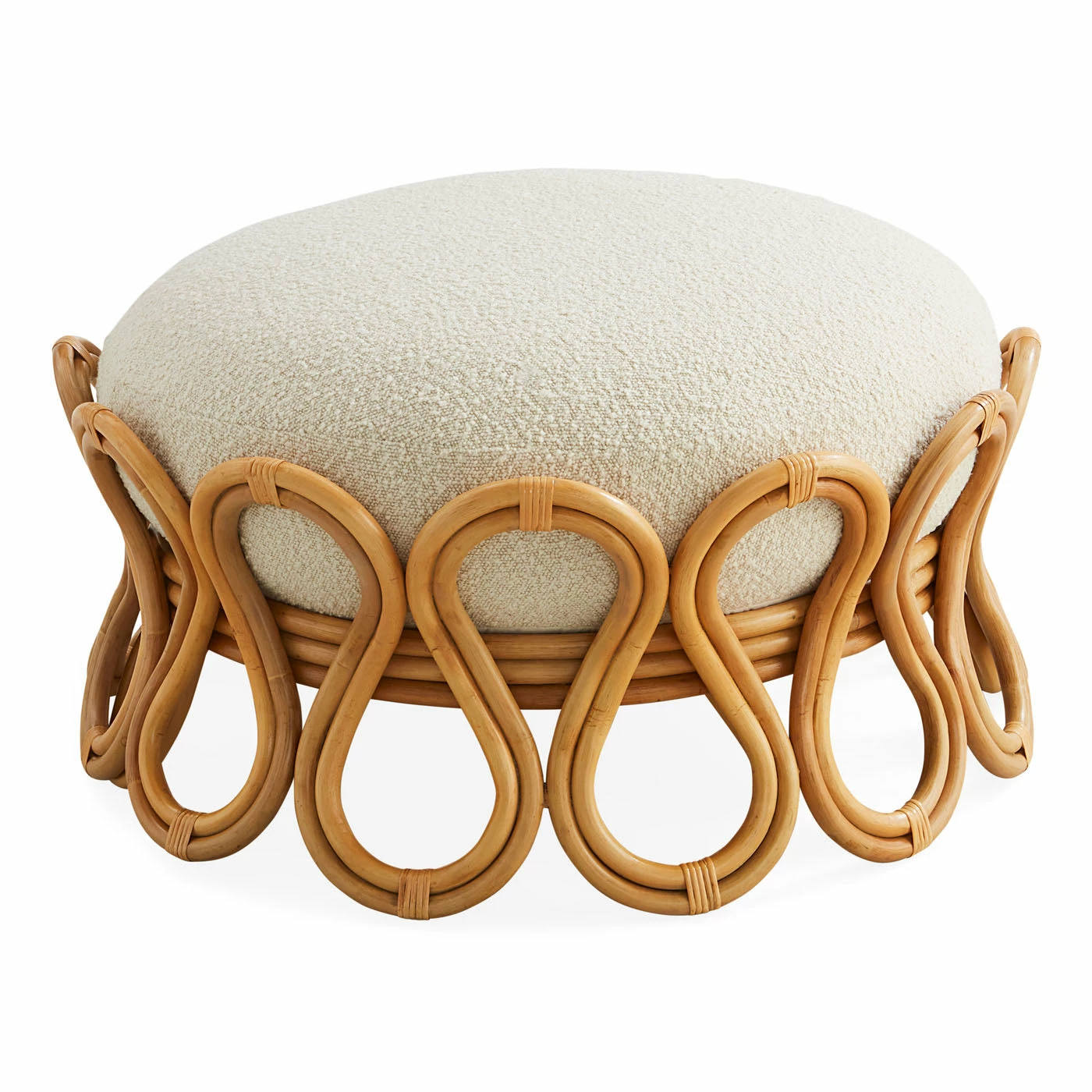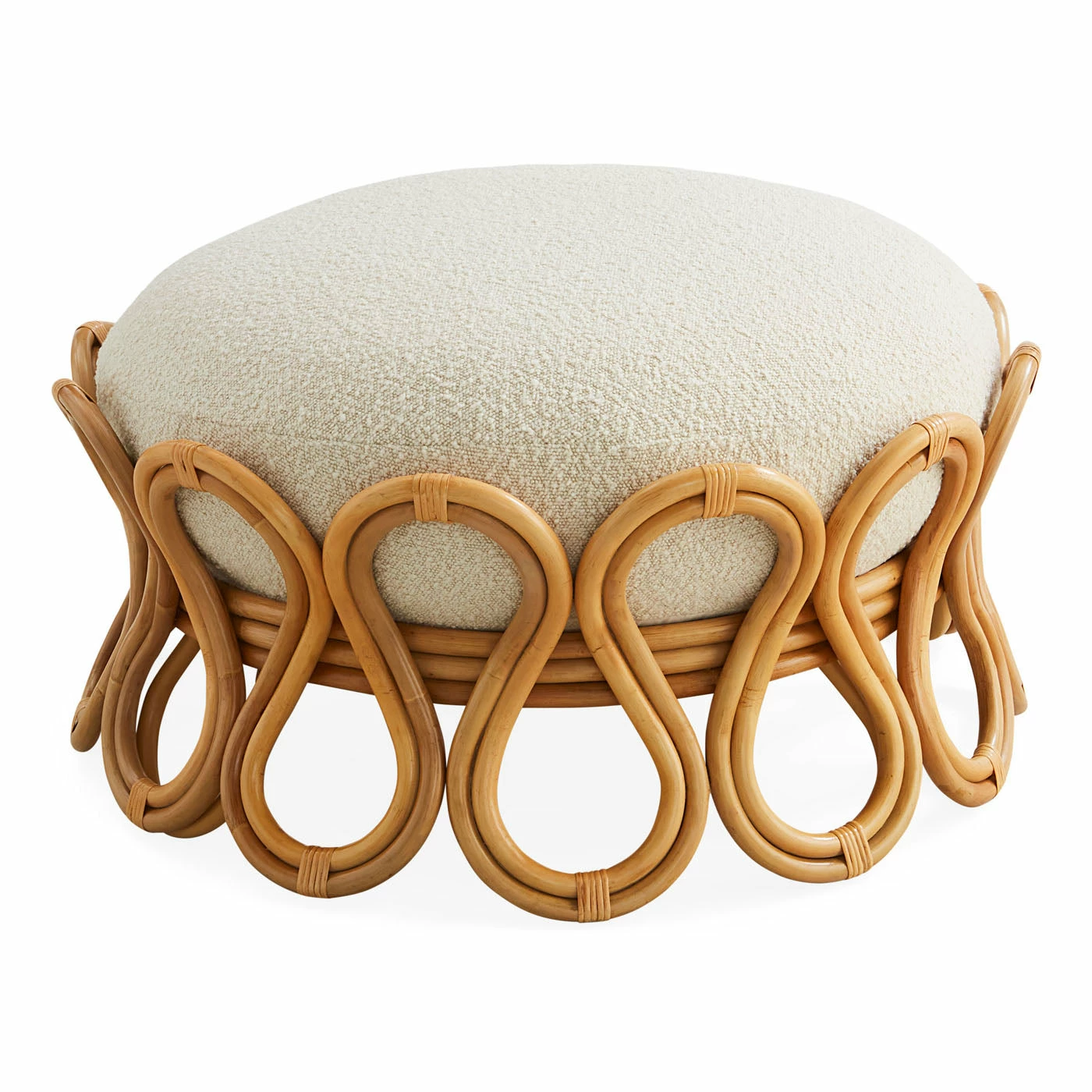 Our Riviera collection is the update on classic French 50s rattan you’ve been waiting for. Evoking grand global glamour, every piece features exquisite craftsmanship—reeds are steeped in water, then hand-coiled and fastened to a sinuous framework. Finished with a satin lacquer topcoat to give the naturally warm tones a luxe sheen, and featuring a thick and squishy oatmeal bouclé-clad cushion.