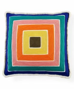 Featuring 60s inspired concentric squares in an electric poppy palette, our Scala pillows are decadent cushions to cozy up to. Dimensional hand-embroidered cording is outlined with a super soft raised brushed fringe. Eye-catching accent pillows on their own, they also bring a boost of depth and dimension to a dreamy pillowscape.