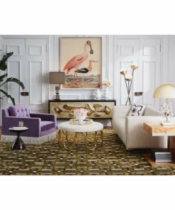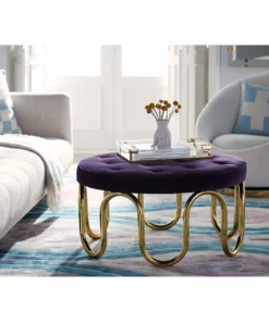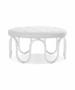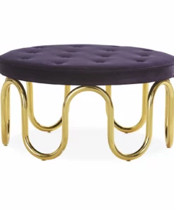Made from a sinuous brass tube base topped with a circular cushion finished in Olympus Ivory bouclé or Venice Aubergine. Simple form, luxe feel, memorable twinkle. Top it with a tray for extra tablespace. At home in a fantastical hotel in Capri or a Park Ave penthouse.
