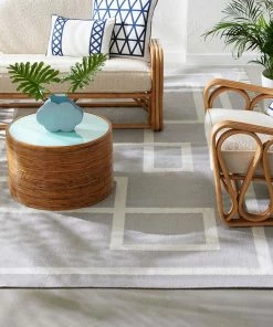Keep style afoot with our collection of reversible, easy-to-clean indoor/outdoor rugs. Our signature Siam Greek key design elevates go-everywhere grey and ivory – the perfect pick for channeling a preppy Palm Beach patio. Finished with fringe for extra flair. Pair with our bright and washable outdoor pillows and keep it cool from backyard to beachside.