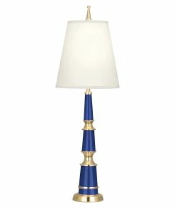 Inspired by scrolling Neoclassical candlesticks, our Versailles lighting collection is boldly traditional and totally today, thanks to a smart combo of powder-coated color with natural brass accents. Packing powerful presence with a small footprint, they’re perfect on petite consoles or demilune tables.