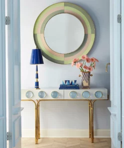 Inspired by scrolling Neoclassical candlesticks, our Versailles lighting collection is boldly traditional and totally today, thanks to a smart combo of powder-coated color with natural brass accents. Packing powerful presence with a small footprint, they’re perfect on petite consoles or demilune tables.