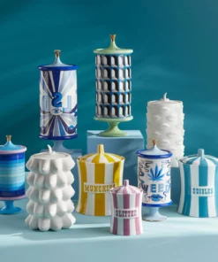Celebrate life’s little helpers. Our iconic canisters show off your indulgences, from sweets to sedatives, in irresistible hues: each high-fired porcelain canister is hand-painted with a graphic black and white or rich color finish. Cluster a few on your counter, keep one bedside for late-night cravings, or go wild and collect them all.