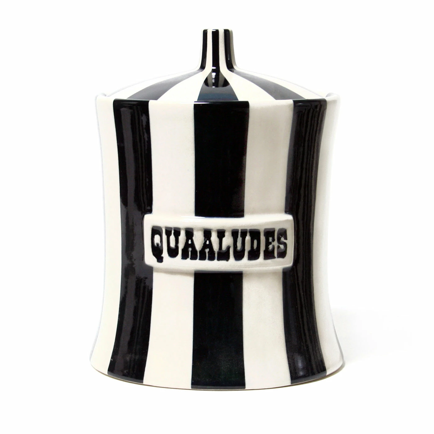 Celebrate life’s little helpers. Our iconic canisters show off your indulgences, from sweets to sedatives, in irresistible hues: each high-fired porcelain canister is hand-painted with a graphic black and white or rich color finish. Cluster a few on your counter, keep one bedside for late-night cravings, or go wild and collect them all.